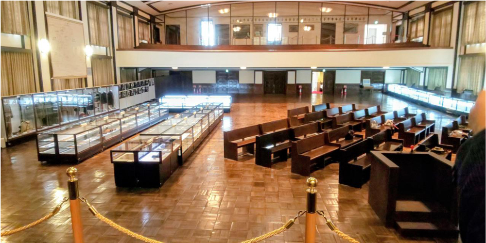 現在、この講堂には戦前の各種の資料が展示されてる。