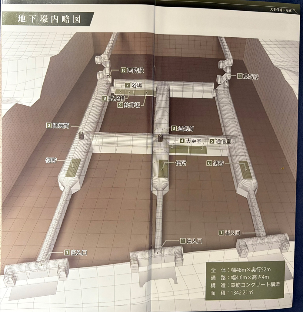 当時地下壕には陸軍大臣室、通信室、炊事場、浴場などの設備を備えていた。この歴史的に貴重な建造物を残していくため補強工事を行い一般公開している。