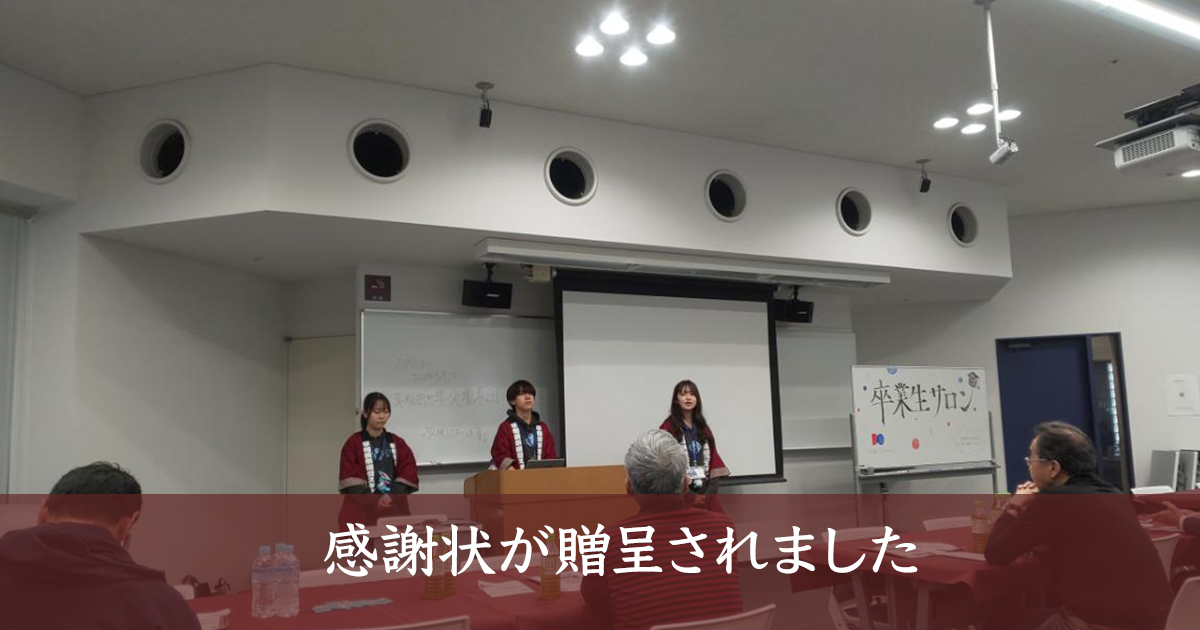 感謝状は早稲田祭開催日当日の11月2日に大学にて贈呈式が行われ、馬場幹事長が出席しました。